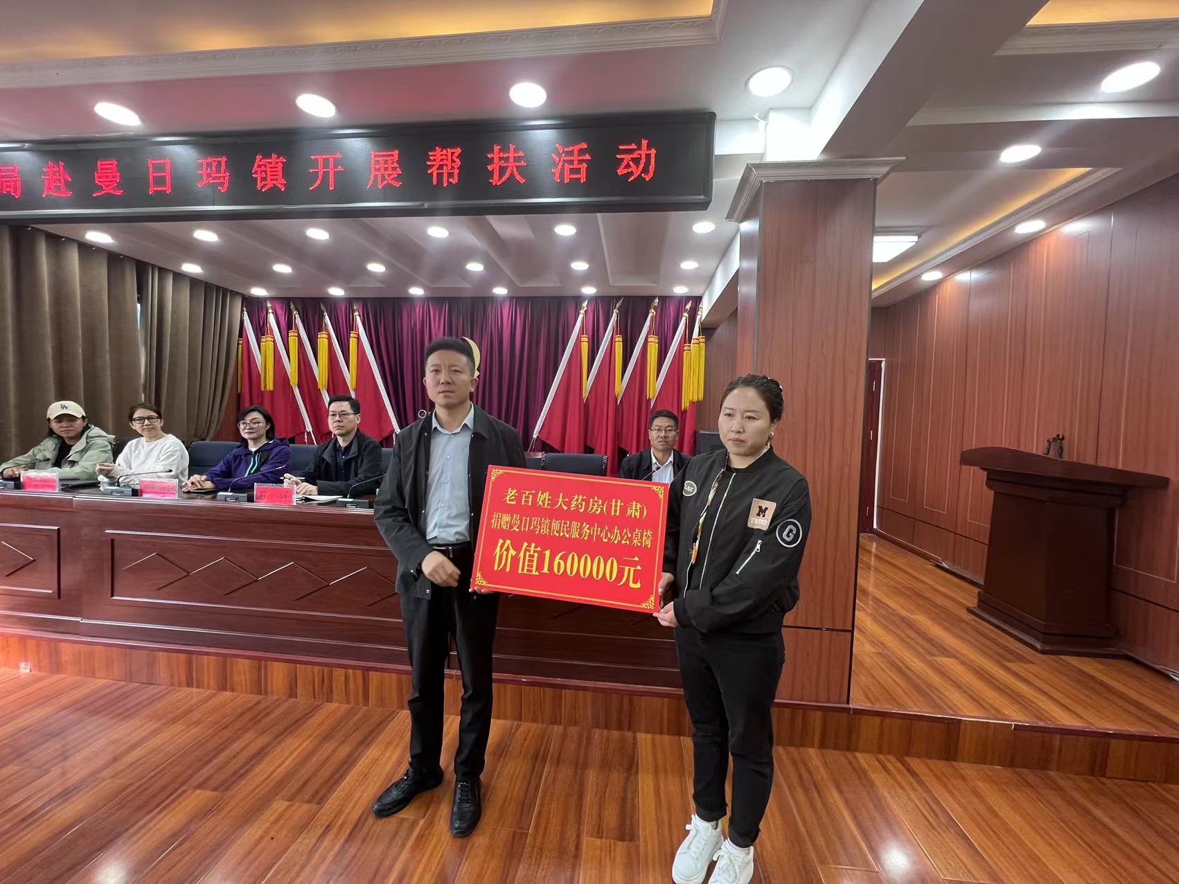 9月3日至4日,甘肃省医疗保障局、甘肃省医保研究会携手老百姓惠仁堂药房,远赴玛曲县开展结对关爱帮扶活动。作为本次活动的重要参与方,老百姓惠仁堂药房在捐赠仪式上向曼日玛镇便民服务中心捐赠了价值16万元的桌椅等办公用品。这批物资的到来,将直接改善基层服务窗口的办公条件,提升工作人员的办公效率,进而为当地群众提供更加便捷、舒适、高效的服务体验。这不仅是一次物质上的援助,更是对基层工作者辛勤付出的肯定与支持。 价值16万元的桌椅等办公用品。
