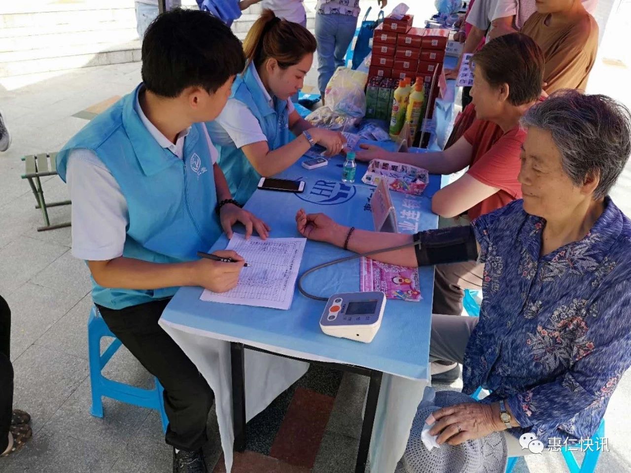 活动现场,为社区居民免费测量血压、测血糖、免费微循环检测、过期药品回收兑换、并耐心解答居民前来咨询的健康问题。夏天是心脑血管疾病发病的高峰期,活动现场,很多老年人前来测量血压,并排起了长队。惠仁堂药业工作人员指导患者如何正确预防心脏病的发生,并根据不同患者的自身情况,进行耐心地讲解。