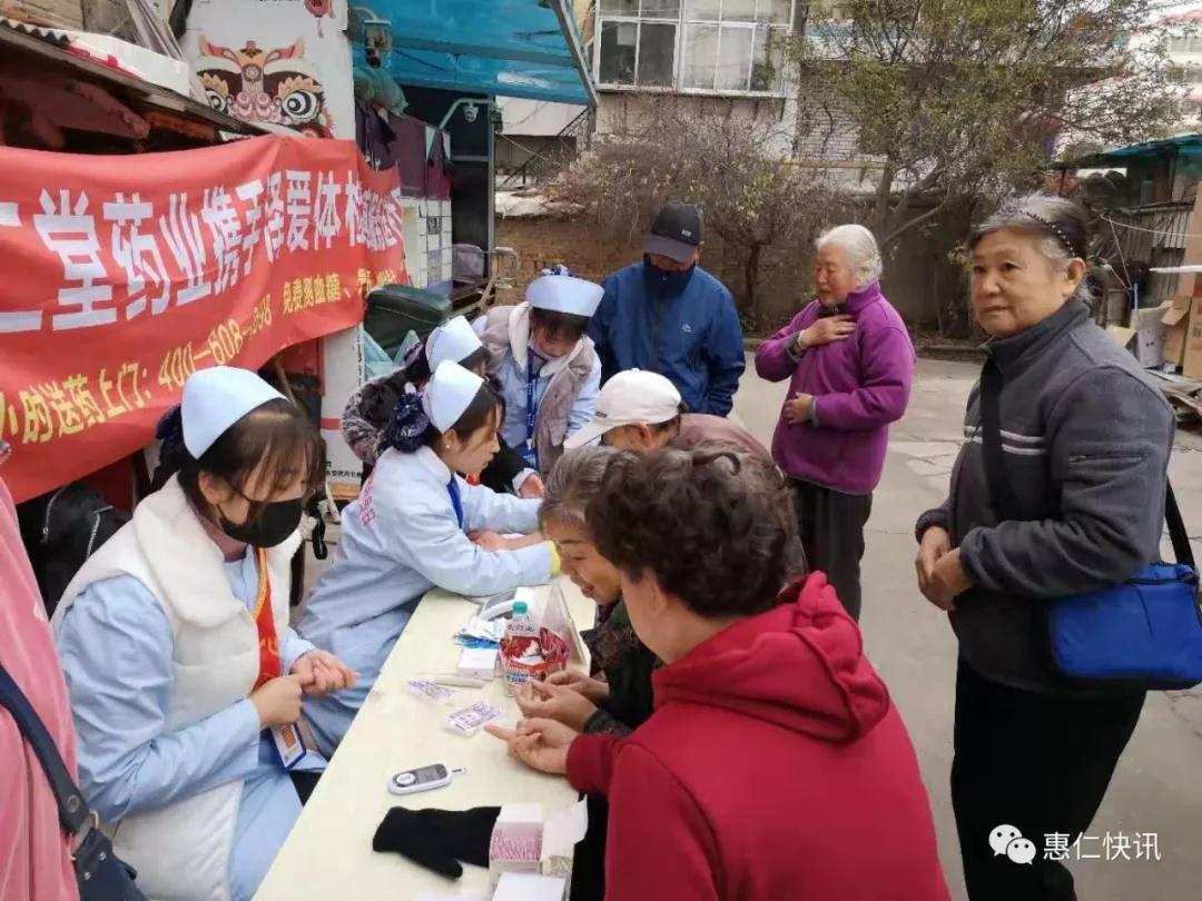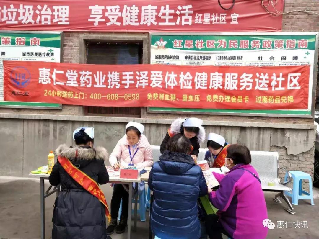 为进一步提高社区老年人健康意识和自我保健能力,更好的为社区居民宣传健康生活方式,营造良好的健身氛围,惠仁堂药业积极开展“健康服务送社区”大型公益活动,11月6日,走进“西固新嘉园小区”及“西固机械化家属院”;11月7日,走进“西固红星小区”,为市民朋友及周边社区居民进行免费健康检查。