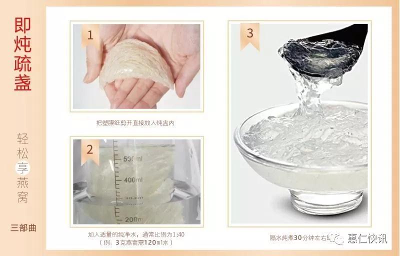 特点是:免泡发免挑毛,炖煮30分钟即可享受美味燕窝,现在开始,燕窝直接炖。